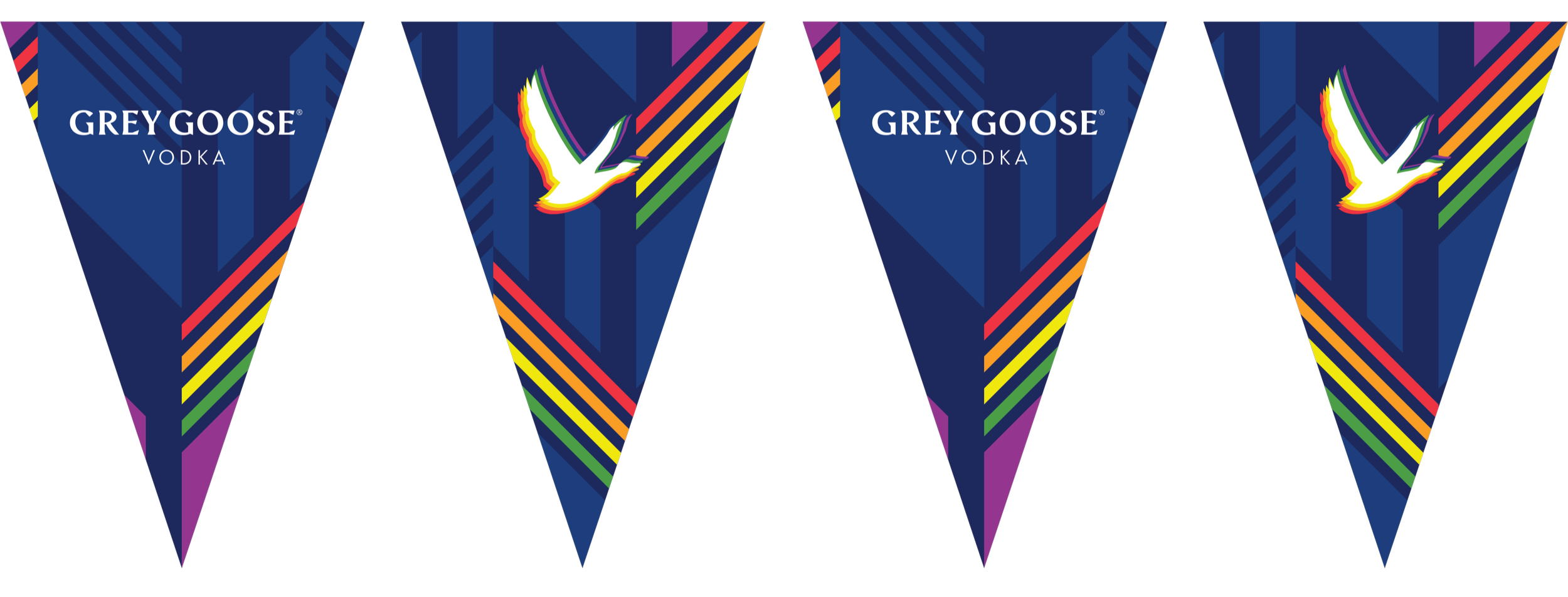 GREY GOOSE is celebrating the LGBTQ+ Community with the FLY TOGETHER Campaign. Style guide and creative designed for POS items and premiums for Pride Month celebrations and event activations.